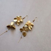 大ぶりのお花モチーフと、さりげなく輝くスワロフスキーが華やかさを演出するイヤーアクセサリーです。